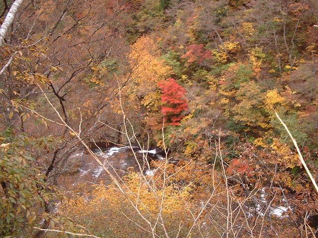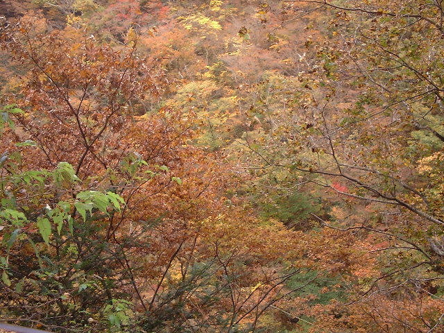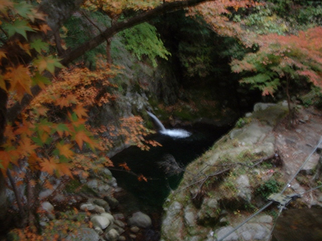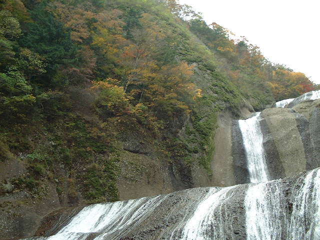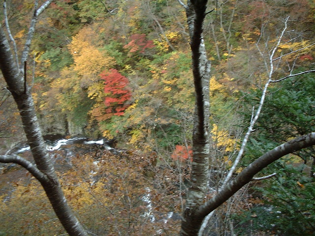 紅葉を求めて「袋田の滝」に行って来ました。 雑誌・TVで紹介されて今が見頃と宣伝されていますが、 それほどの「みどころ」「みごろ」ではなかった。 滝そのものは素晴らしく¥100払って下から見上げても良し・急階段を100mほど 登って上から眺めると更に絶景です。 でもこのまま帰るには物足らないので「竜神峡」に廻る予定をやめ、ちょっと遠いですが 快適な山越えドライブで高萩の「花貫渓谷」へ行きました。 人の手が入っているで「見事な紅葉!」です。少し暗くなっていましたので、 ピンボケ気味です。ここはお勧めです。