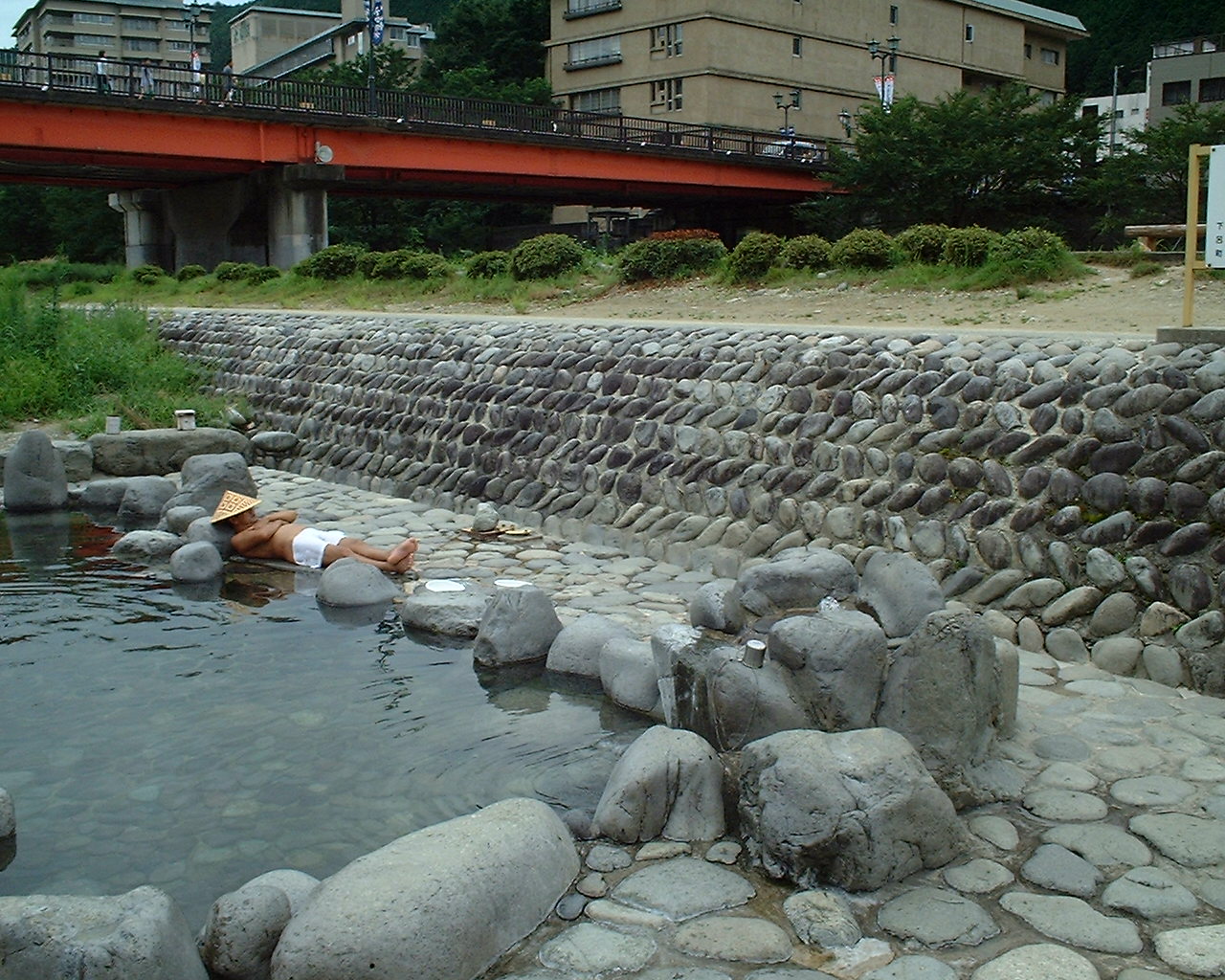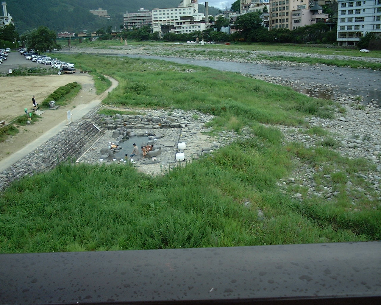 さっそく河原の露天風呂に入りました。私が入った時「掛け流し」で昼寝をしていたオジサンが
