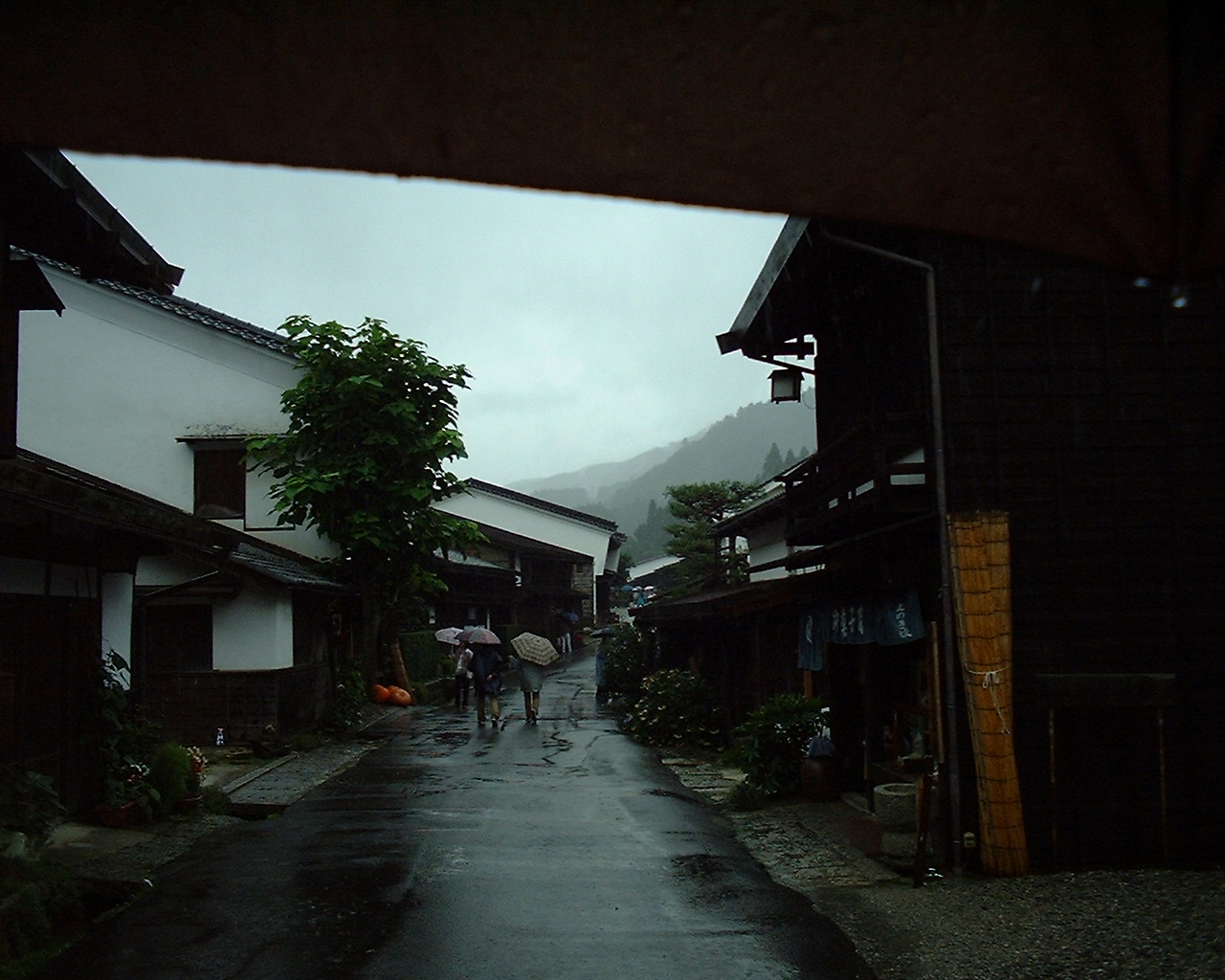 三日目:台風の風は全くなく雨の中、台風情報・道路情報を横目で見ながら、妻籠宿・馬籠宿・高遠と