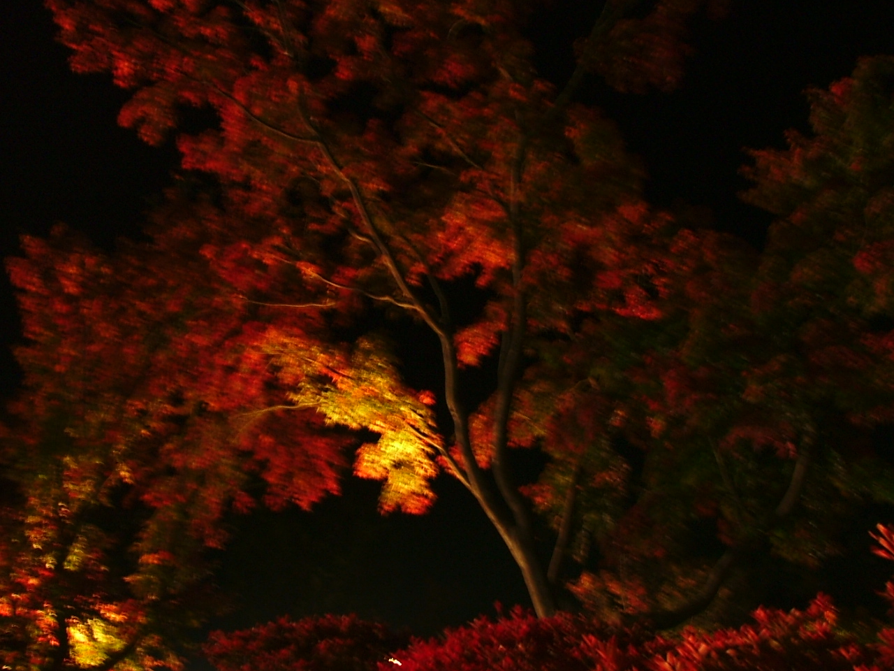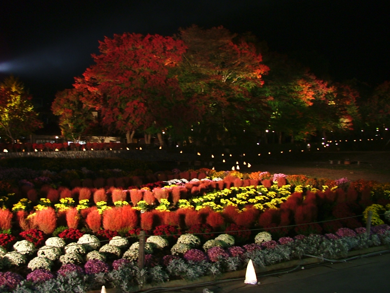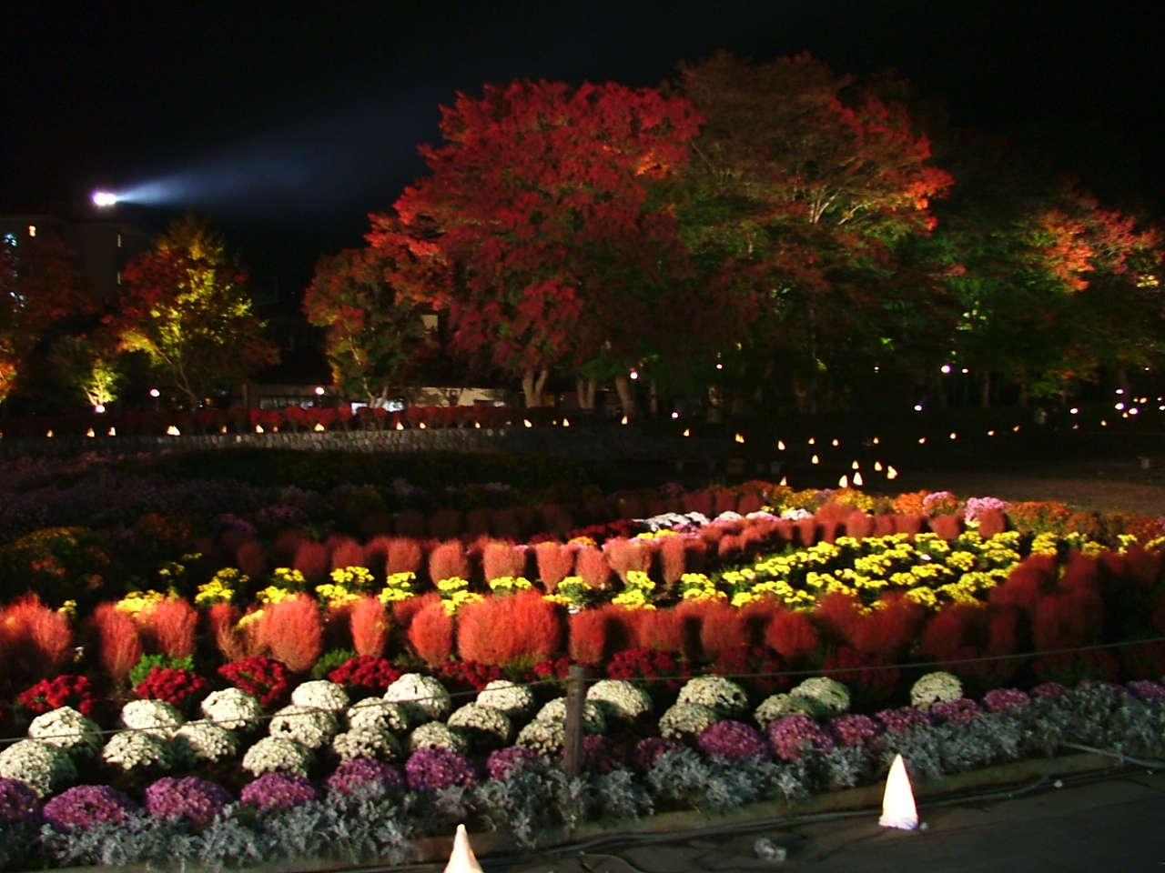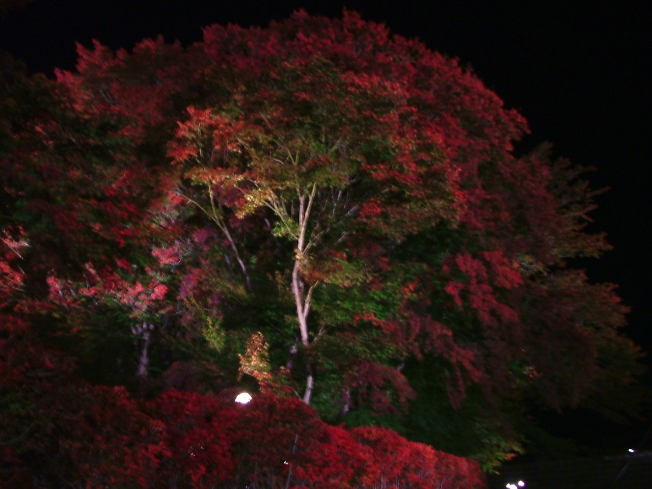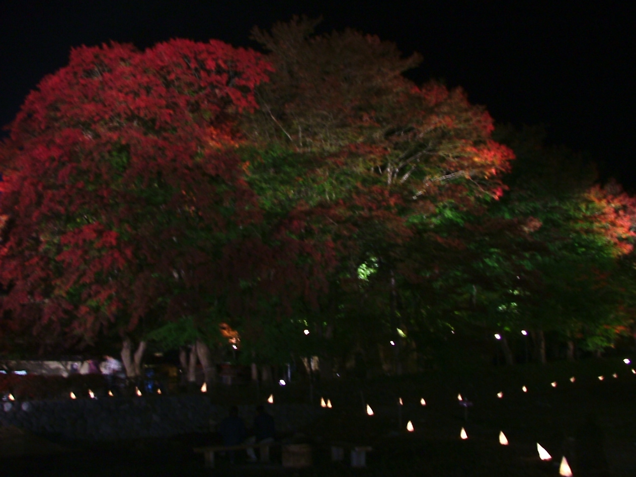 日没で紅葉しているかどうか見えません、「確かライトアップが・・」
