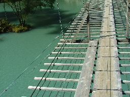 つり橋を通る90分の散策コースを巡って、強アルカリ泉掛流しの町営露天風呂で汗を流しました。